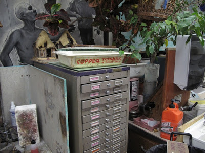 Still life material hangs from the ceiling....Deb doesn't waste space.